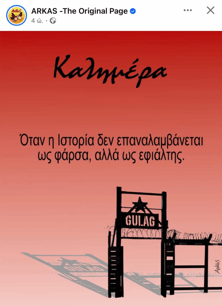 Παρομοιάζει τους χώρους συγκέντρωσης των μεταναστών με τα Γκούλαγκ της εποχής του σταλινισμού, επισημαίνοντας: «Όταν η Ιστορία δεν επαναλαμβάνεται ως φάρσα αλλά ως εφιάλτης»