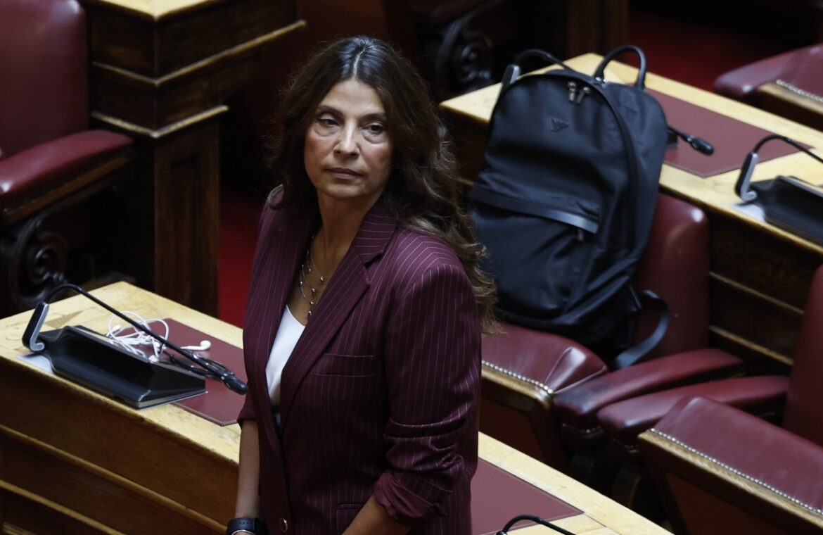 Φαρδύ κοστούμι, βαθύ αισθαντικό χρώμα και φλατ για την Πόπη Τσαπανίδου