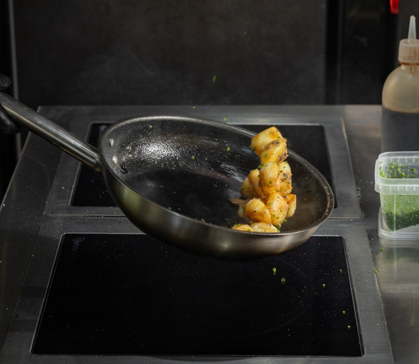Η αγάπη της για τα λαδερά φαγητά με σάλτσα από ντομάτα, που θυμίζουν τη μαγειρική της γιαγιάς της, οδήγησε τη Μαρίνα Χρονά, σεφ και ιδιοκτήτρια του Ρίνι, να συμπεριλάβει στον κατάλογό της ένα ταπεινό αλλά συνάμα πεντανόστιμο και ξεχασμένο από αρκετούς πιάτο της ελληνικής κουζίνας. Πατάτες γιαχνί με πλούσια σάλτσα σερβιρισμένες με λουκάνικο μαύρου χοίρου και τυροκαυτερή. Ένα ρουστίκ πιάτο, που χορταίνει σώμα και ψυχή. Από αυτά που μας έχει συνηθίσει το Ρίνι δηλαδή.