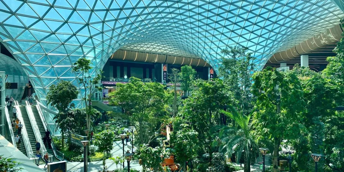 Η προσγείωση στο αεροδρόμιο Τσανγκί της Σιγκαπούρης, αποτελεί μια μοναδική εμπειρία. Έχοντας βραβευτεί πολλές φορές ως το καλύτερο αεροδρόμιο της υφηλίου, το εντυπωσιακό του περιβάλλον σίγουρα θα σε συναρπάσει. Το σήμα κατατεθέν του δεν θα μπορούσε παρά να είναι το αξίας πάνω από ένα δισεκατομμύριο κτίριο με το όνομα Jewel. Φτιαγμένο με πρώτο υλικό του το γυαλί, μέσα στους δέκα ορόφους του θα έχεις την δυνατότητα να θαυμάσεις ένα πραγματικό κατάφυτο δάσος, υπό τους ήχους των ορμητικών νερών ενός συντριβανιού που αγγίζει τους εφτά ορόφους, κάνοντας τον μεγαλύτερο περίκλειστο καταρράκτη ολόκληρης της γης.