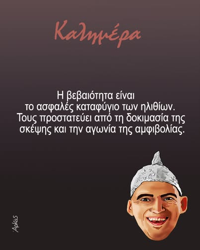 «Η βεβαιότητα είναι το ασφαλές καταφύγιο των ηλιθίων. Τους προστατεύει από τη δοκιμασία της σκέψης και την αγωνία της αμφιβολίας», γράφει ο Αρκάς στην επίσημη σελίδα του στο Facebook.