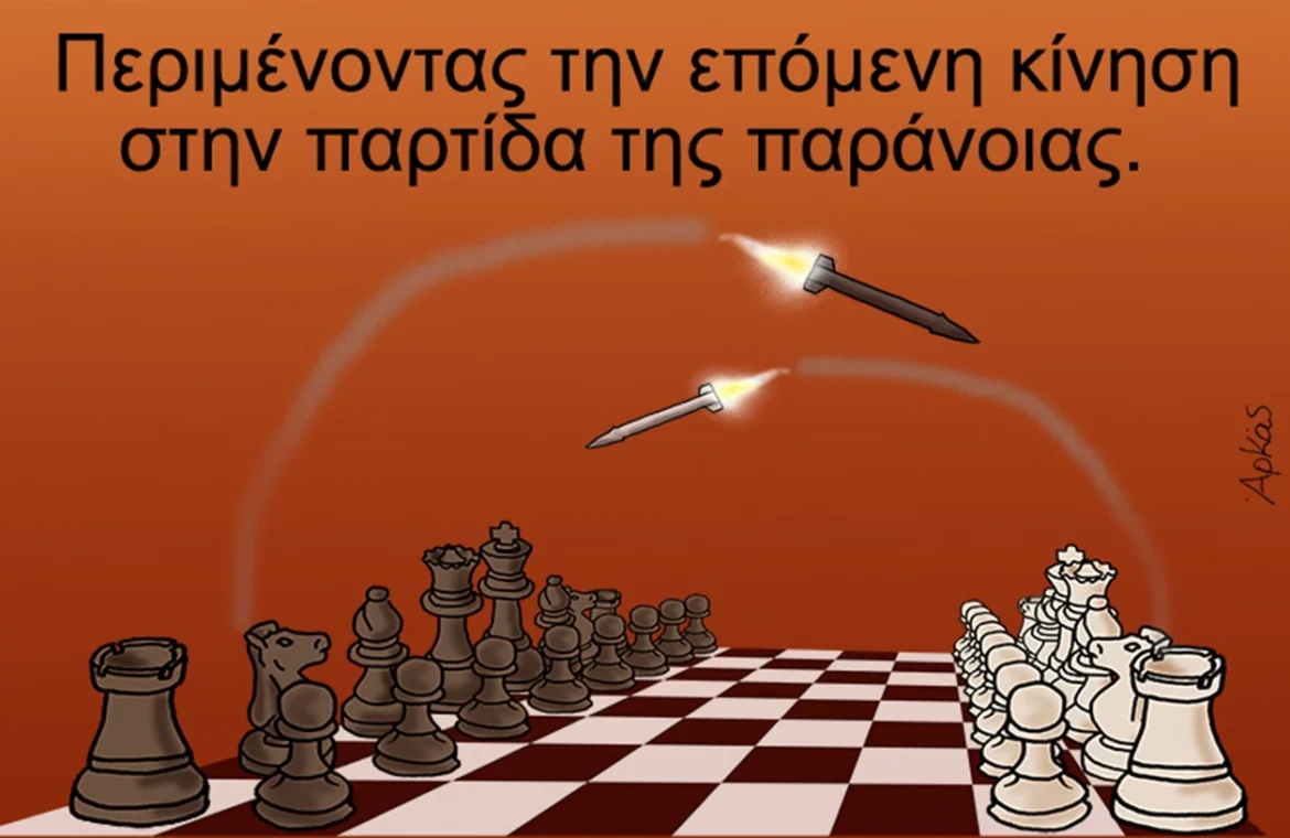 ις εξελίξεις στη Μέση Ανατολή σχολιάζει με ένα νέο του σκίτσο ο Αρκάς παρουσιάζοντας την «παρτίδα της παράνοιας».
