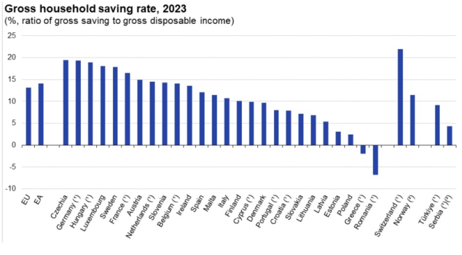 Κατάθεση είναι, μεταξύ άλλων, όταν πουλάς το σπίτι σου και τοποθετείς τα χρήματα στην τράπεζα, ενώ αποταμίευση αυτό που περισσεύει από το εισόδημα σου – ενώ η Ελλάδα έχει αρνητικές αποταμιεύσεις από το 2021 και μετά.