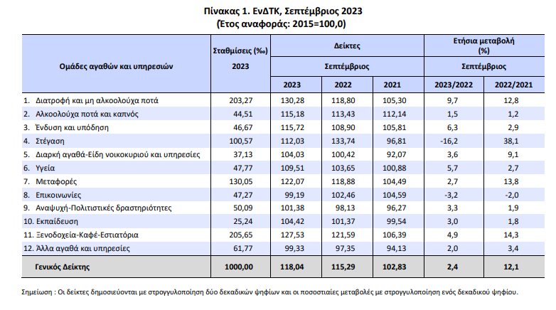 «ΕΛΣΤΑΤ: Αυξημένες κατά 9,4% οι τιμές στα τρόφιμα τον Σεπτέμβριο – στο 1,6% πτωτικός ο εγχώριος πληθωρισμός (ΔΤΚ) και στο 2,4% ο εναρμονισμένος».