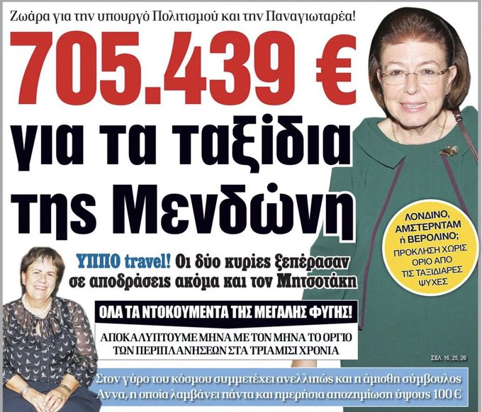 Φάτε μακαρόνια Νο6 εσείς και σκάστε όσο η ΝΔ κ τα σούργελα της τρώνε τα λεφτά μας κ κάνουν ζωάρα. Αλήθεια, πόσα ασθενοφόρα θα αγοράζαμε με 705.000€ που έφαγαν σε ταξίδια… φιλενάδες;