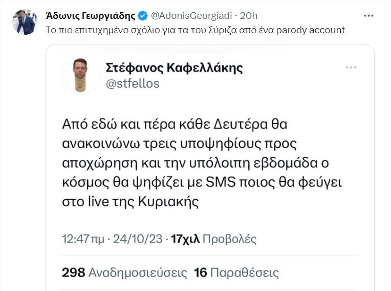 Προφανώς μετά τις αναλύσεις και το ενδιαφέρον που έχει δείξει ο ακροδεξιός υπουργός της κυβέρνησης Μητσοτάκη για τα τεκταινόμενα στον ΣΥΡΙΖΑ, αφού πήρε και θέση στην προεδρική εκλογή, τώρα το τερματίζει αναπαράγοντας στο “X” (πρώην Twitter) παρωδίες και τρολ.