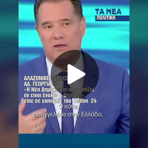 Παραπολιτικά Αλαζονικές δηλώσεις του Άδωνη Γεωργιάδη «Η Νέα Δημοκρατία αποφασίζει αν είναι ένοχος ο Βορίδης» Ιούλ 20, 2025 to kentri Twitter Facebook LinkedIn Pinterest Email @ta_nea.gr Αλαζονικές δηλώσεις του Άδωνη Γεωργιάδη «Η Νέα Δημοκρατία αποφασίζει αν είναι ένοχος ο Βορίδης» ♬ πρωτότυπος ήχος – ΤΑ ΝΕΑ – ΤΑ ΝΕΑ ❝ ετικέτες ❞ #ΓΕΩΡΓΙΑΔΗΣ