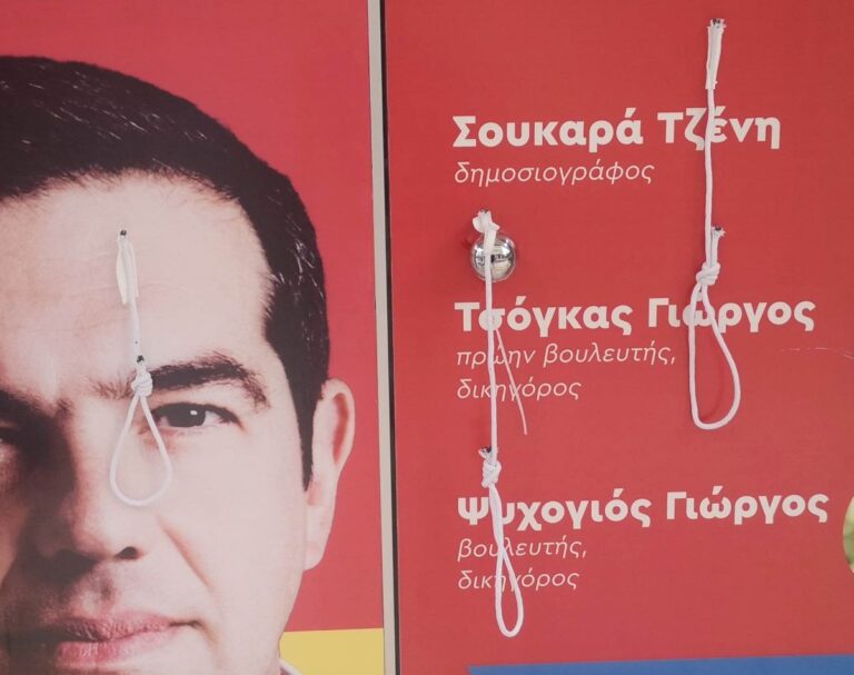 Με αφορμή περιστατικό που φαίνεται να προέκυψε με τοποθέτηση σχοινιών με θηλιές (κρεμάλες), από αγνώστους, στο εκλογικό κέντρο του ΣΥΡΙΖΑ -Π.Σ. Κορινθίας, η Νομαρχιακή Κορινθίας του ΣΥΡΙΖΑ – Π.Σ., εξέδωσε επίσημη ανακοίνωση.