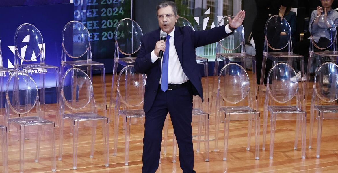 «Πατρίδα, Θρησκεία, Οικογένεια» φώναζε ο Γιώργος Αυτιάς στην εκδήλωση της ΝΔ για τους υποψήφιους ευρωβουλευτές, ξεσηκώνοντας το κομματικό ακροατήριο