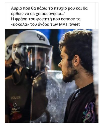 Αφορμή το εκπληκτικό βίντεο και οι φωτογραφίες του ρεπόρτερ της «Αυγής», Κώστα Παπαντωνίου, που έγιναν viral, με τον φοιτητή που κοιτάει με θάρρος στα μάτια έναν ΜΑΤαζτή.