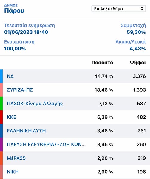 -Τι ψήφισαν οι Παριανοί το 2023; Δείτε τον πίνακα.