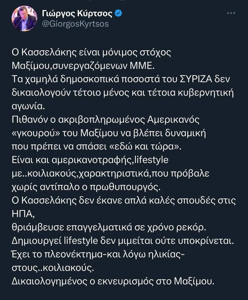Παραπολιτικά Κύρτσος για Κασσελάκη Μαρ 05, 2024 to kentri Twitter Facebook LinkedIn Pinterest Email ❝ ετικέτες ❞ #ΚΥΡΤΣΟΣ