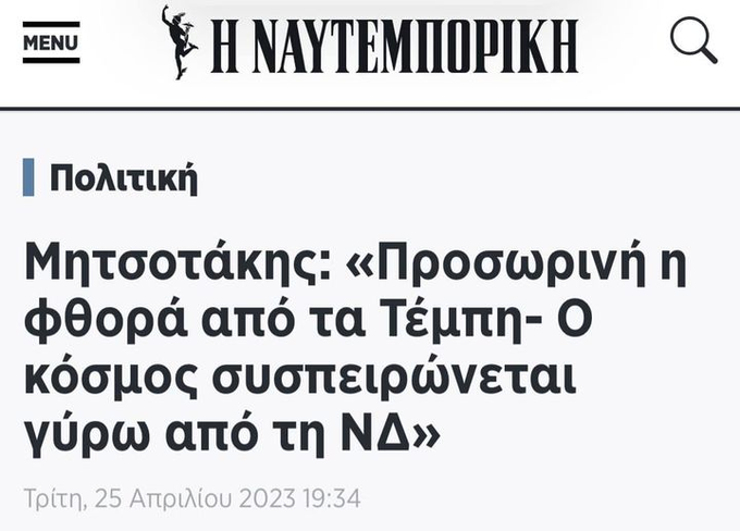 Elena Akrita «Προσωρινή φθορά» οι 57 νεκροί των Τεμπών. Με ένα πόρισμα επιτροπής που άδειασε μεγαλοπρεπώς την κυβερνηση (η τηλεδιοίκηση δεν λειτουργούσε από το 2019). «Προσωρινή φθορά». Στους γονείς και τους συγγενείς των νεκρών να το πείτε αυτό κ. Μητσοτάκη. Ότι τα αγαπημένα τους πρόσωπα είναι «προσωρινή φθορά». Άθλιος, θλιβερός, ανάλγητος. Ψηφίστε τον.