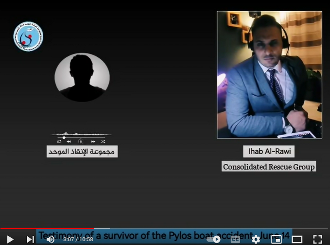 Σοκαριστικές λεπτομέρειες για το πολύνεκρο ναυάγιο που σημειώθηκε ανοιχτά της Πύλου έδωσε ένα από τους επιζώντες ο οποίος μίλησε σε εκπρόσωπο του Consolidated Rescue Group, με την καταγγελία να αναμεταδίδεται από το Ευρωπαϊκό Συμβούλιο για τους Πρόσφυγες και τους Εξόριστους (ECRE).