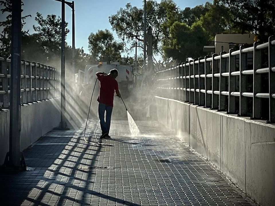 “Η πρώτη φωτογραφία είναι τραβηγμένη από εμένα στις 08:34 το πρωί σήμερα στο γεφυράκι που μαχαίρωσαν τον αδικοχαμένο Μιχάλη. Την πλένουν με πιεστικό.