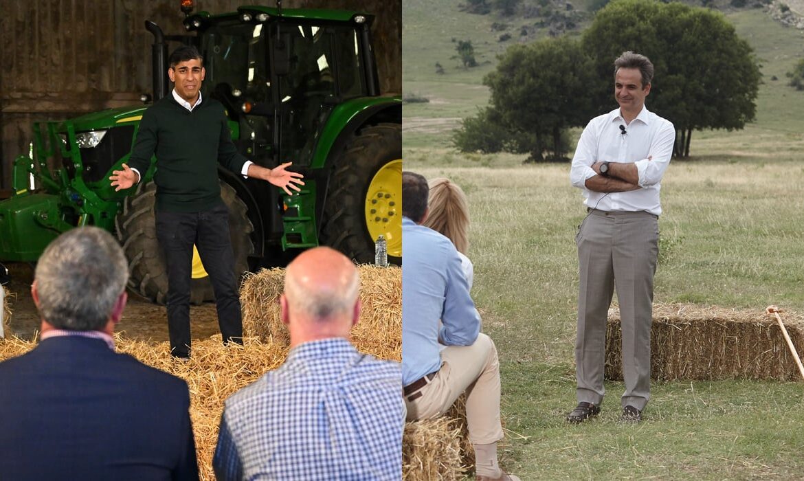 Ο Ρίσι Σούνακ, πάντως, μίλησε σε αγρότες που κάθονταν πάνω σε μπάλες με σανό, όπως ακριβώς είχε κάνει ο Κυριάκος Μητσοτάκης, το 2017, σε περιοδεία του στη Λάρισα.
