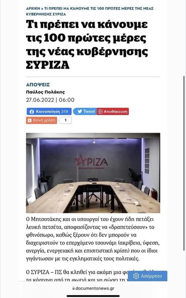 Μετά το χθεσινό εξευτελισμό του Μητσοτακη από τον Αλεξη Τσιπρα και την απόδειξη της λειτουργιας ΠΑΡΑΚΡΑΤΟΥΣ ,ΥΠΟΚΛΟΠΩΝ Κ ΕΚΒΙΑΣΜΩΝ, επικαιροποιώ αυτά που ειχα γραψει τον Ιούνιο του 2022 ,ΠΡΟΣΘΕΤΟΝΤΑΣ ΤΟ (Α),τα οποία ο ΣΥΡΙΖΑ-ΠΣ θα πρέπει να υλοποιήσει ΑΜΕΣΩΣ (τις πρώτες 100 ημέρες) μόλις αναλάβει τη διακυβέρνηση της χώρας, για να επιστρέψει η ΔΙΚΑΙΟΣΥΝΗ ΠΑΝΤΟΥ: