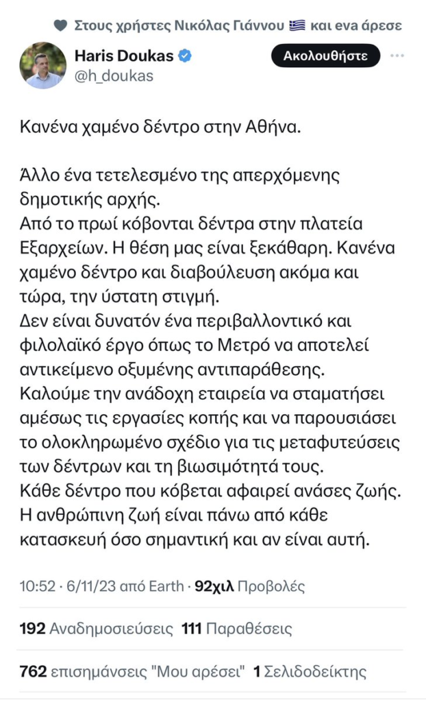 Ο @h_doukas έκανε αυτή την φαιδρή ανάρτηση σήμερα….πιστεύω ότι δεν είναι μακρυά η εποχή που οι Αθηναίοι θα κλάψουν με μαύρο δάκρυ για την επιλογή τους και εύχομαι να βγω ψεύτης…πάντως το Metro πρέπει να ολοκληρωθεί θα είναι κρίμα να το σταματήσει ο νέος Δήμαρχος