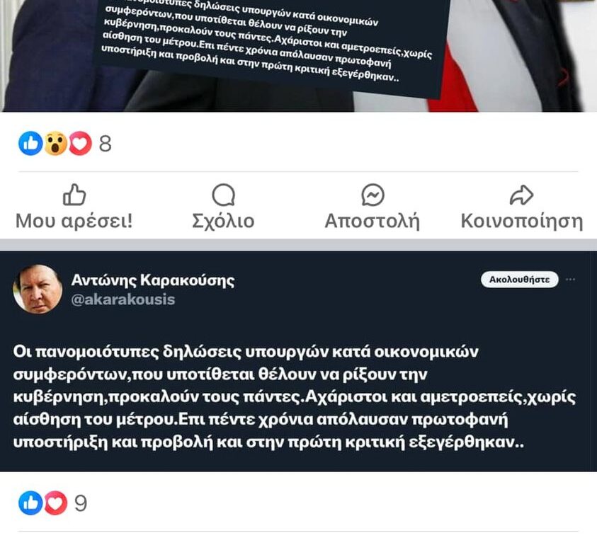 Η δήλωση Καρακούση συνιστά μία ομολογία που προκαλεί ανατριχίλα. Είναι όμως κοινό μυστικό. Η αχάριστη κυβέρνηση επιτίθεται σε έναν όμιλο που την στήριξε ακόμα και στα μεγαλύτερα εγκλήματα που διέπραξε κατά της Ελλάδας και των Ελλήνων.Στο σκάνδαλο Novartis το οποίο αποδυνάμωσε το έθνικό σύστημα υγείας με τρομακτικές συνέπειες.