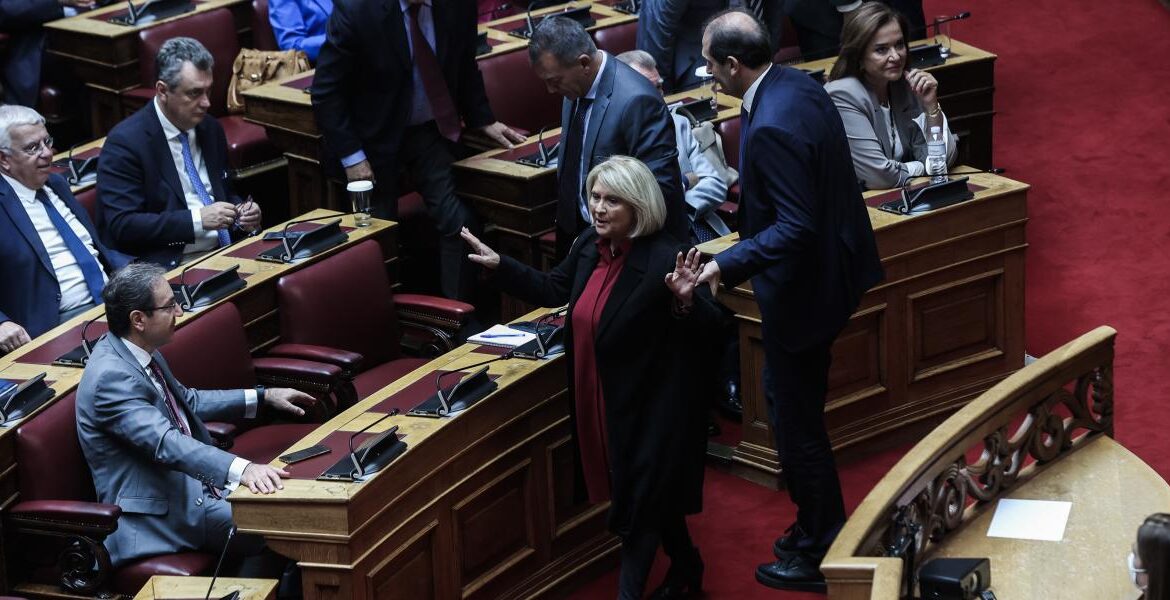 Αμέσως οι βουλευτές που βρίσκονταν κοντά στη βουλευτή της Νέας Δημοκρατίας έσπευσαν να τη βοηθήσουν να σηκωθεί.