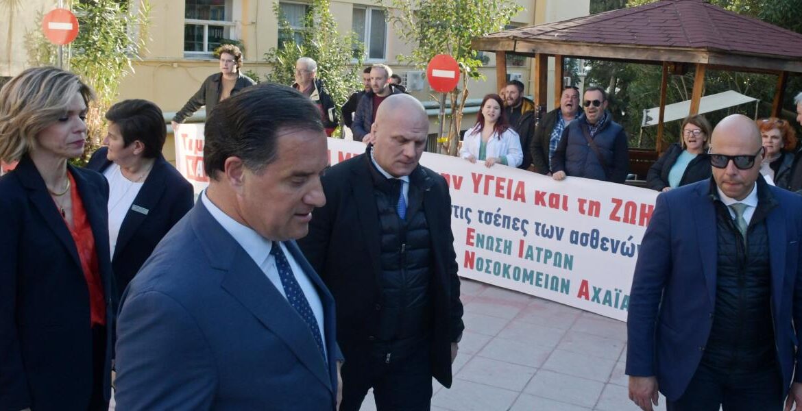 Με συνθήματα κατά των απογευματινών χειρουργείων της διάλυσης του ΕΣΥ από την κυβέρνηση Μητσοτάκη, η υποδοχή του Άδωνι Γεωργιάδη στο Καραμανδάνειο Νοσοκομείο Παίδων στην Πάτρα, όπου πραγματοποιήθηκε συγκέντρωση διαμαρτυρίας, με αφορμή την επίσκεψη του υπουργού Υγείας.