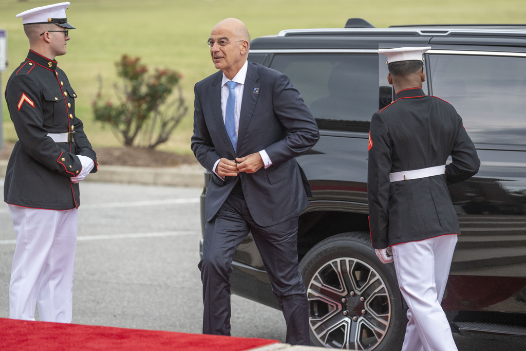 Επίσης, ο Νίκος Δένδιας είπε ότι «αυτό που πρέπει να συμφωνήσουμε όλοι είναι να υποστηρίξουμε τη διεθνή τάξη που βασίζεται σε κανόνες. Να μην αποδεχθούμε αλλαγές με τη βία. Να μην αποδεχθούμε την τρομοκρατία ως τρόπο αλλαγής του κόσμου».
