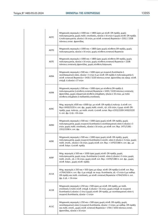 • Εξαιρετικά βαριά επέμβαση: 2.000