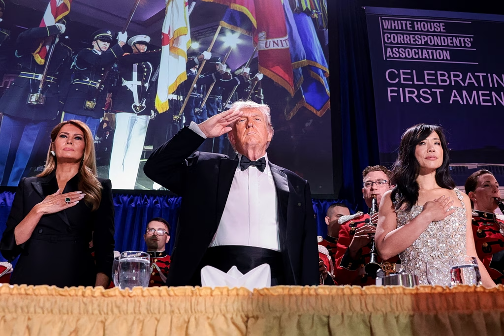 Ήταν προφανές πως η Λίβιτ προετοίμαζε το κοινό ότι ο Τραμπ θα αστράψει και θα βροντήξει εναντίον των δημοσιογράφων σε αυτή την εκδήλωση όπου παραδοσιακά τα «καρφιά» δίνουν και παίρνουν, σε μια άσκηση ισορροπίας ανάμεσα στο χιούμορ, τον σαρκασμό και την πολιτική κριτική.