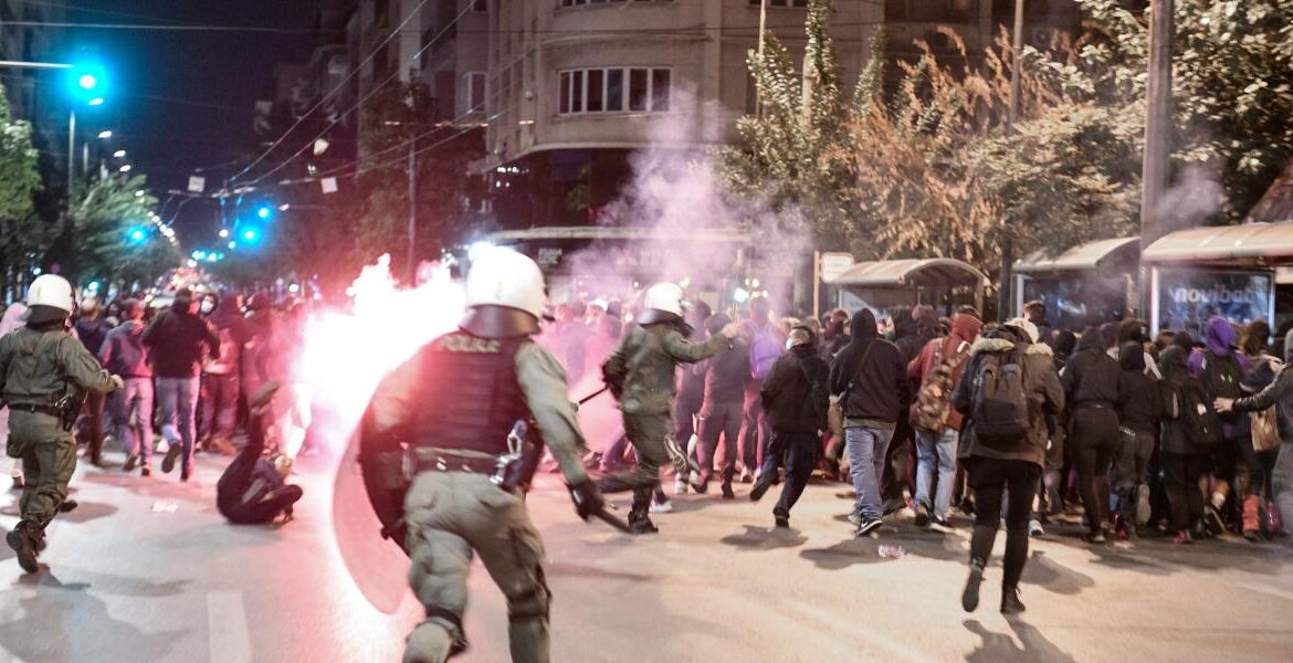 Όταν η πορεία έφτασε κοντά στο αστυνομικό τμήμα, μικρή μερίδα διαδηλωτών πέταξε μολότοφ, με τις αστυνομικές δυνάμεις να απαντούν με χημικάκρότου λάμψης και κυνηγητό στα γύρω στενά.