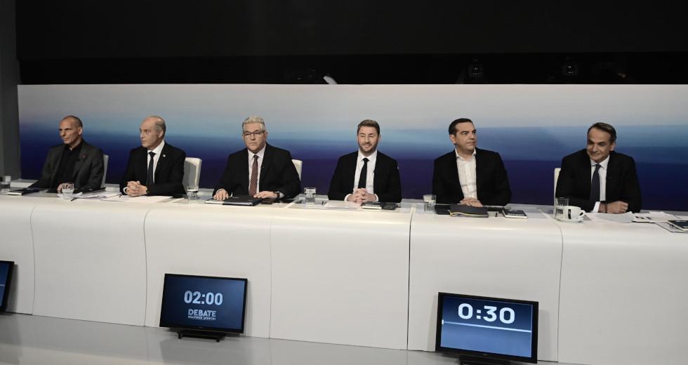 Ολοκληρώθηκε η τηλεμαχία μεταξύ των πολιτικών αρχηγών στο Ραδιομέγαρο, υπό τον συντονισμό του δημοσιογράφου της ΕΡΤ, Γιώργου Κουβαρά.