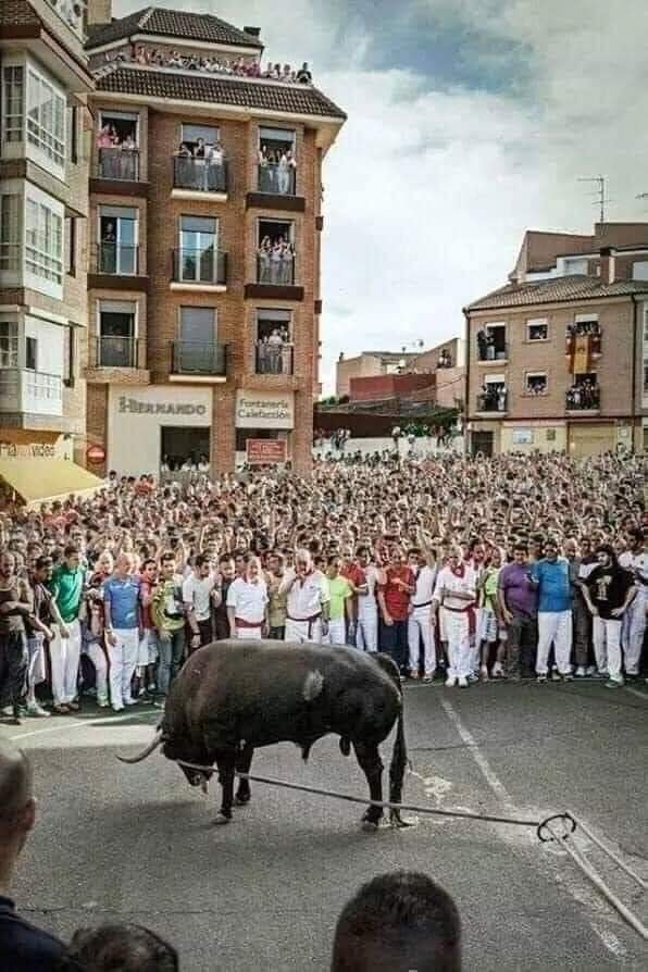 με αργό και επώδυνο τρόπο… την ώρα που χιλιάδες ανεγκέφαλα δίποδα, πανηγυρίζουν και ζητωκραυγάζουν ολόγυρα, για τον λεβέντη ταυρομάχο, για έναν ακόμη σαδιστή δολοφόνο.