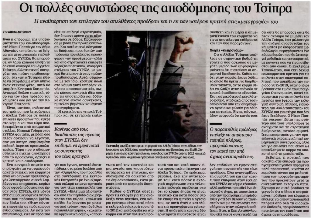 Το πρώτο, μέχρι στιγμης το εκφράζει ξεκάθαρα μόνον η υποψηφιότητα του Νίκου Παππά, ενώ εν μέρει το υπηρετεί και εκείνη του Στέφανου Τζουμάκα. Στο δεύτερο ουσιαστικά ομνύουν αν και με διαφορετική αφετηρία και αφήγημα, τόσο η γραμμή της Εφης Αχτσιογλου όσο και η πλευρά του Ευκλειδη Τσακαλώτου. Δυο κείμενα μάλιστα που είδαν το φως της δημοσιότητας το Σαββατοκύριακο πιστοποιούν τη σύμπλευση των δυο τελευταίων υποψηφίων κυρίως σε ότι έχει να κάνει στην (απο) «κάθαρση» του ΣΥΡΙΖΑ απο τα «στοιχεία » της περιόδου Τσίπρα και τον «εξωραισμό» του κόμματος απο τα κυβερνητικά «χαρακτηριστικα» που του είχε προσδώσει ο ιστορικός του ηγέτης. «Άτυχης, άσχετη με την αριστερά και χωρίς καμία ψυχολογική και ιδεολογικη συνταύτιση με τον ΣΥΡΙΖΑ» η επιλογή του Αλέξη Τσίπρα για τον Δήμο της Αθήνας με τον μπασκετμπολίστα Νίκο Παππά» για τους υπογράφοντες την επιστολή «ανησυχίας» που δημοσιεύτηκε στην Εφ.Συν ( απο στελέχη προσκείμενα κυρίως στον πρώην γραμματέα Δημ Τζανακοπουλο αλλά και στη Γέφυρα του Νίκου Μπίστη που έχει ταχθεί ανοιχτά υπέρ της υποψηφιότητας της Εφης Αχτσιογλου). Με σαφέστατο «άρωμα» Νίκου Φίλη αλλά και Ομπρέλας το σημερινό άρθρο της δεξιάς Καθημερινής που ουσιαστικά αποδομεί ιδεολογικά αλλά και πολιτικά την περίοδο Τσίπρα αποδίδοντας σε αυτόν τις ήττες του 2019 ( 32%) και του 2023 (20%)! Ξεχνώντας όμως σκοπίμως ότι για να θεωρούν ως ήττα το 32 και το 20% είχε προηγηθεί η εκτίναξη του ΣΥΡΙΖΑ του Αλέξη Τσίπρα με 25% το 2012, 37% τον Ιανουάριο του 2015 και 36,5% τον Σεπτέμβριο της ίδιας χρονιάς. Διαφορετικά, ακόμα και το 17,85% του Ιουνίου θα ήταν θριαμβος μπροστά στο 5% που έπαιρνε ο ιδεολογικά «άμεμπτος» ΣΥΡΙΖΑ μέχρι την εμφάνιση Τσίπρα