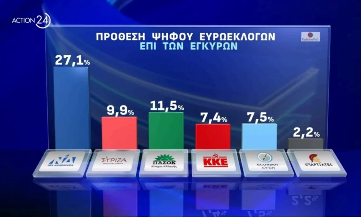 Πρόθεση ψήφου ευρωεκλογών επί των έγκυρων: