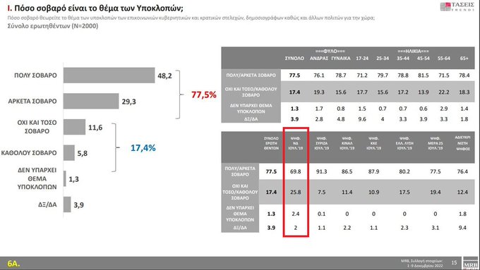 Όταν γίνεται σωστά η ερώτηση σε #δημοσκοπηση(MRB). Γιατί έρχονται #εκλογες; Το 77.5% θεωρεί αρκετά/πολύ σοβαρό το θέμα #υποκλοπές. Στους ΝΔκράτες του 19,το 69.8%. Φανταστείτε τα ποσοστά,αν γινόταν η σωστή ερώτηση αν υπάρχει εμπιστοσύνη στην Ελλ.#Δικαιοσυνη