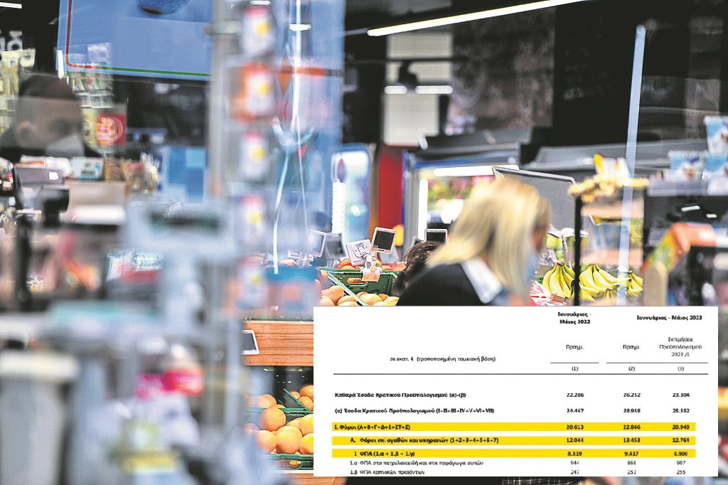 Την ίδια ώρα μόνο για το 2023 και μόνο για τους φόρους εισοδήματος και περιουσίας (άμεση φορολόγηση) η κυβέρνηση Μητσοτάκη έχει προϋπολογίσει έσοδα της τάξης των 20,16 δισ. ευρώ, αυξημένα κατά 660 εκατ. ευρώ σε σχέση με το 2022 που ανήλθαν σε 19,5 δισ. ευρώ. Ομως εκεί που γίνεται αληθινή σφαγή είναι στους έμμεσους φόρους (κυρίως ΦΠΑ), οι οποίοι «γδύνουν» την κοινωνία και εξατμίζουν το εισόδημα των νοικοκυριών προς δόξα της ανάπτυξης του ΑΕΠ. Σύμφωνα με τα στοιχεία εκτέλεσης του κρατικού προϋπολογισμού για το διάστημα Ιανουαρίου – Μαΐου 2023 επί αγαθών και υπηρεσιών (κυρίως ΦΠΑ και ειδικοί φόροι κατανάλωσης – ΕΦΚ), οι εισπράξεις ανήλθαν σε 13,45 δισ. ευρώ, ενώ πέρυσι στο ίδιο διάστημα είχαν εισπραχθεί 12,04 δισ. ευρώ. Αρα έχουμε αύξηση κατά 7,9% σε σχέση με μια χρονιά, το 2022, κατά την οποίο η ακρίβεια γονάτισε τα νοικοκυριά. Hδη δηλαδή έχει εισπράξει στο πεντάμηνο 1,41 δισ. ευρώ περισσότερα από πέρυσι. Ειδικά ο ΦΠΑ που εισπράχθηκε σ’ αυτό το πρώτο πεντάμηνο του έτους ανέρχεται σε 9,41 δισ., όταν πέρυσι στο ίδιο διάστημα είχαν εισπραχθεί από απόδοση ΦΠΑ 8,31 δισ. ευρώ ή 11,7% σε σχέση με το αντίστοιχο πεντάμηνο του 2022.
