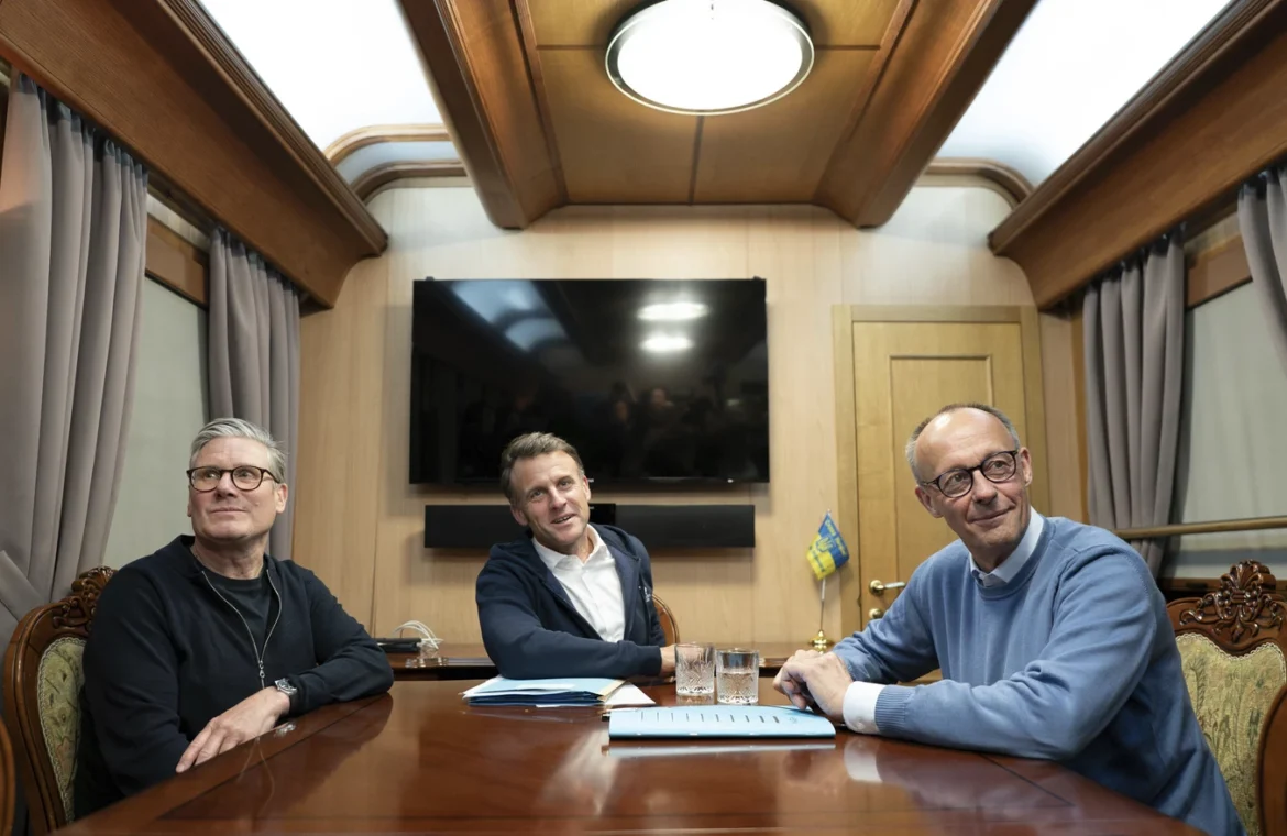 Αφού έσπρωξαν τον Ζελένσκι σε μια ακόμη κολασμένη ίντριγκα για να σαμποτάρουν την επίλυση [της σύγκρουσης] και να συνεχίσουν την αιματοχυσία στην Ευρώπη, όπως στο ανέκδοτο, ο Γάλλος, ο Άγγλος και ο Γερμανός μπήκαν σε ένα τρένο και… έκαναν μια τζούρα. Προφανώς, τόσο πολύ, που ξέχασαν να μαζέψουν τα σύνεργα (ένα σακουλάκι και ένα κουταλάκι) πριν έρθουν οι δημοσιογράφοι.