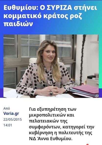 Όλα ξεκινήσαν, όταν τα «Νέα» με παραπολιτικό τους, έγραψαν για μία γυναίκα βουλεύτρια της ΝΔ μεγάλης περιφέρειας στη Βόρεια Ελλάδα που έχει συμβάσεις με το Δημόσιο.