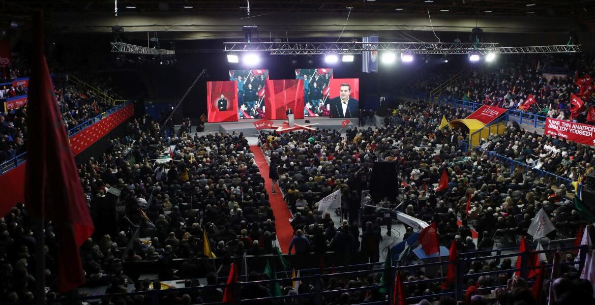 Το κλειστό γυμναστήριο «Ανδρέας Παπανδρέου» αποδείχθηκε πολύ μικρό για να χωρέσει όσους έσπευσαν να ακούσουν την ομιλία του προέδρου του ΣΥΡΙΖΑ – ΠΣ