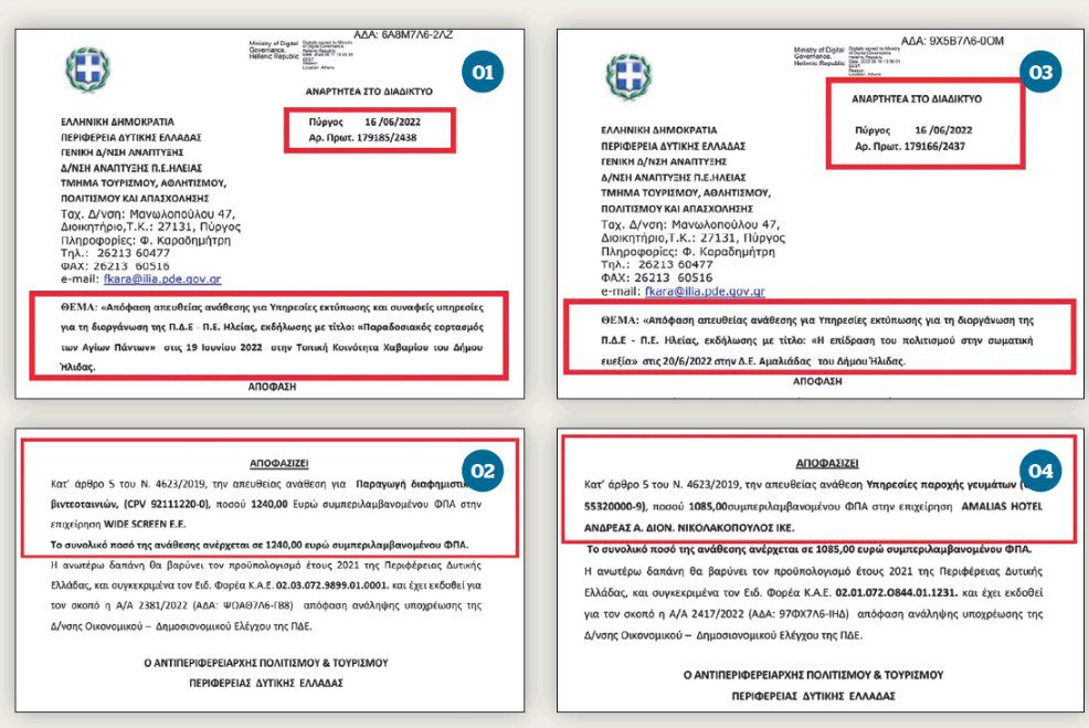 Οπως αποκαλύπτεται μέσα από επίσημα έγγραφα που είναι αναρτημένα στη Διαύγεια αλλά και από σχετικές καταγγελίες επαγγελματιών στο Documento, ο αντιπεριφερειάρχης Πολιτισμού και Τουρισμού Νικόλαος Κοροβέσης, με αιτιολογία τις πολυδιαφημισμένες πολιτιστικές εκδηλώσεις του φετινού καλοκαιριού, εγκρίνει πλουσιοπάροχα σημαντικά κονδύλια σε διάφορες εταιρείες και προμηθευτές για δήθεν πολιτιστικές εκδηλώσεις και για δράσεις που ουδέποτε πραγματοποιήθηκαν!