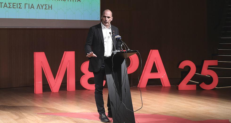 Ο Γιάνης Βαρουφάκης τόνισε ότι «σε μια περίοδο που η ολιγαρχία έχει βρει ριζοσπαστικούς τρόπους να κερδίζει βουλιάζοντας την πλειοψηφία στην χρεοκοπία», το ΜέΡΑ25 «έχει ευθύνη να ριζοσπαστικοποιηθεί ανάλογα».
