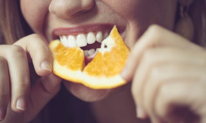 Η βιταμίνη C προάγει την υγεία των ούλων, γι’ αυτό τρώτε εσπεριδοειδή, ντομάτες, πιπεριές, μπρόκολο, πατάτες και σπανάκι.