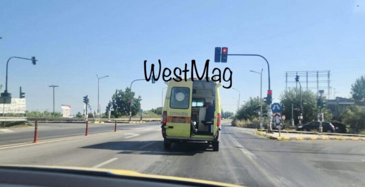 Οδηγός που κινούνταν στην Εθνική Οδό Πατρών-Πύργου στο ύψος της Ανδραβίδας είδε ασθενοφόρο του ΕΚΑΒ να κινείται με ανοιχτή πόρτα.