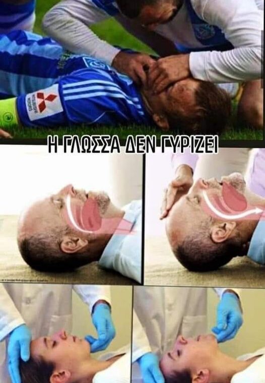 Η πρώτη φωτογραφία απεικονίζει την γλώσσα που χαλαρώνει σε αναίσθητο θύμα και η δεύτερη πως απελευθερώνεται ο αεραγωγός όταν εφαρμόζουμε την τεχνική “έκταση της κεφαλής και ανύψωση της κάτω γνάθου”.