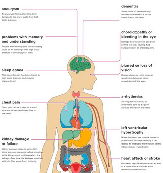 - Εγκεφαλικού επεισοδίου, ισχαιμικού ή αιμορραγικού, καθώς είτε οι φραγμένες αρτηρίες μπορούν να εμποδίσουν την παροχή οξυγόνου στον εγκέφαλο, είτε κάποιο ανεύρυσμα να σπάσει.