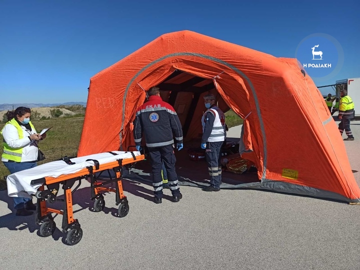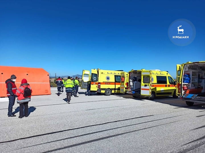 Μεγάλη διασωστική άσκηση βρίσκεται αυτή την ώρα σε πλήρη εξέλιξη στο αεροδρόμιο «Διαγόρας» Ρόδου, στην οποία συμμετέχουν στελέχη της FRAPORT του ΕΚΑΒ, της Πυροσβεστικής Υπηρεσίας και της Ελληνικής Αστυνομίας.