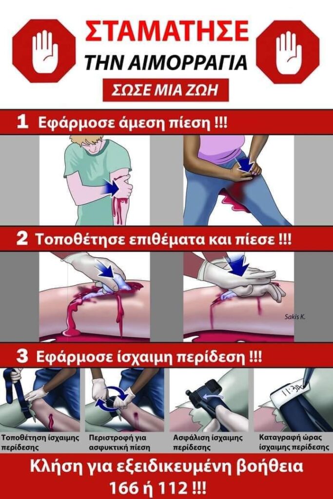 Σε κάθε περίπτωση μετά από τις οποιεσδήποτε ενέργειες μας καλούμε εξειδικευμένη βοήθεια το ΕΚΑΒ στα τηλέφωνα 166 η 112.