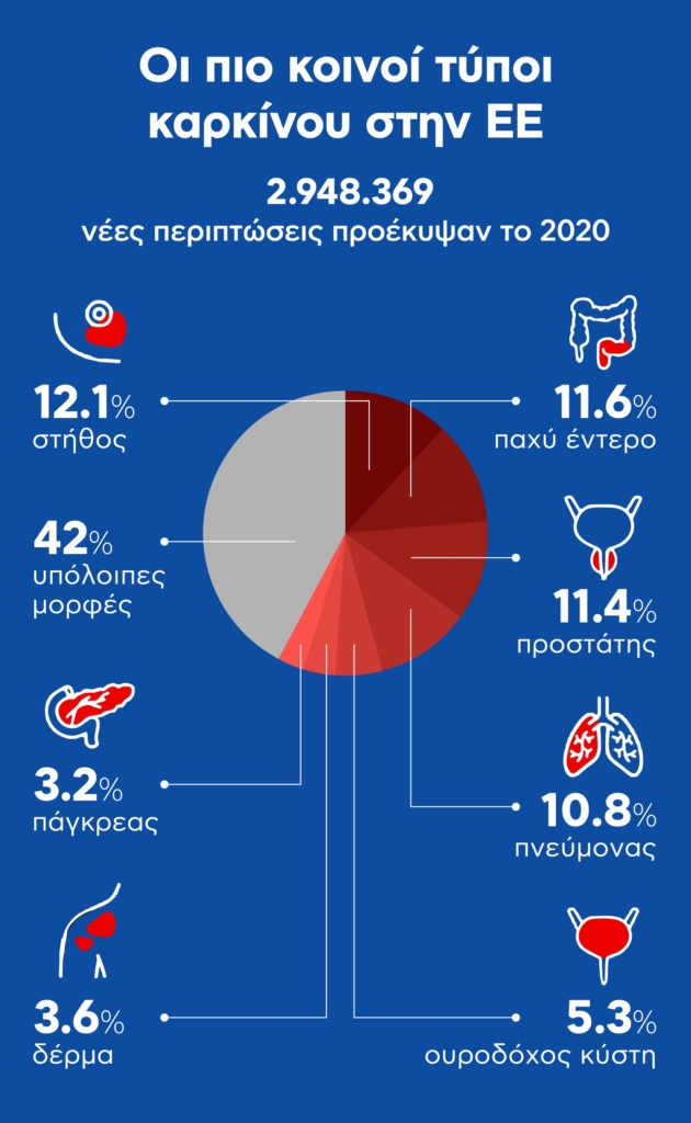 Μόνο το 2020, σχεδόν 3 εκατ. άνθρωποι διαγνώστηκαν με καρκίνο και 1,274 εκατ. άνθρωποι έχασαν τη ζωή τους από καρκίνο στην ΕΕ.