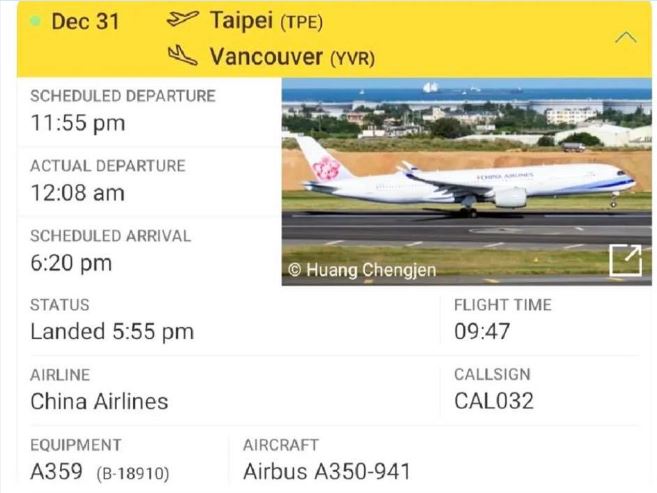 Πως έγινε αυτό; Η πτήση αναχώρησε από την Ταϊπέι στις 00:08, όταν είχε ήδη αλλάξει ο χρόνος στην Κίνα και προσγειώθηκε στο Βανκούβερ του Καναδά στις 17:55, που λόγω της αλλαγής ώρας είχαν ακόμα 31.12.2021. Άλλωστε, είναι γνωστό πως το νέο έτος πάντα γιορτάζεται πρώτα σε χώρες όπως η Νέα Ζηλανδία, η Αυστραλία, η Ιαπωνία και η Κίνα και τελευταία έρχεται η αμερικανική ήπειρος, λόγω της διαφοράς ώρας.