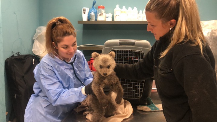 Ο πρώτος έλεγχος που έγινε στο αρκουδάκι στο Κτηνιατρείο Άγριων Ζώων του Διεθνούς Περιβαλλοντικού Κέντρου έδειξε μόνο ότι ήταν ελαφρώς λιποβαρές και υποσιτισμένο, όμως σε άριστη υγεία. Τρέφεται ήδη με ειδικό παρασκεύασμα γάλακτος, υποκατάστατο του μητρικού, ενώ ήδη δείχνει προτίμηση και σε μικρά κομμάτια φρούτων.