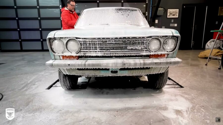 Κατά συνέπεια, η αναστήλωση αυτού του θρυλικού Datsun από την κορυφαία αμερικανική εταιρεία ανακατασκευών AMMO NYC, ξεκίνησε με ένα λεπτομερές, καλό πλύσιμο, που είναι αρκετά ενδιαφέρον όπως μπορείτε να δείτε στο παρακάτω video.